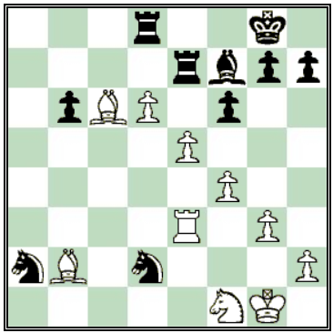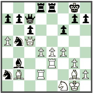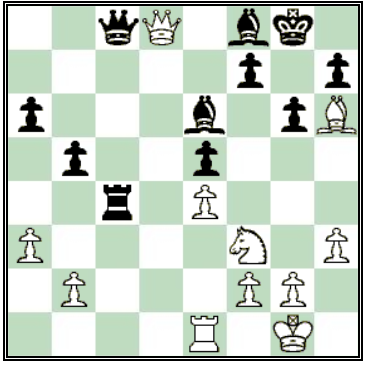 [Missing 27…Bf8 and the attack on the White Queen would allow Black to win the e4 pawn next move.]